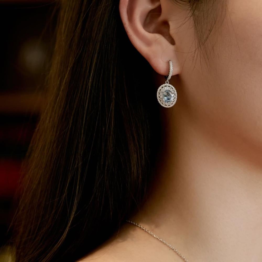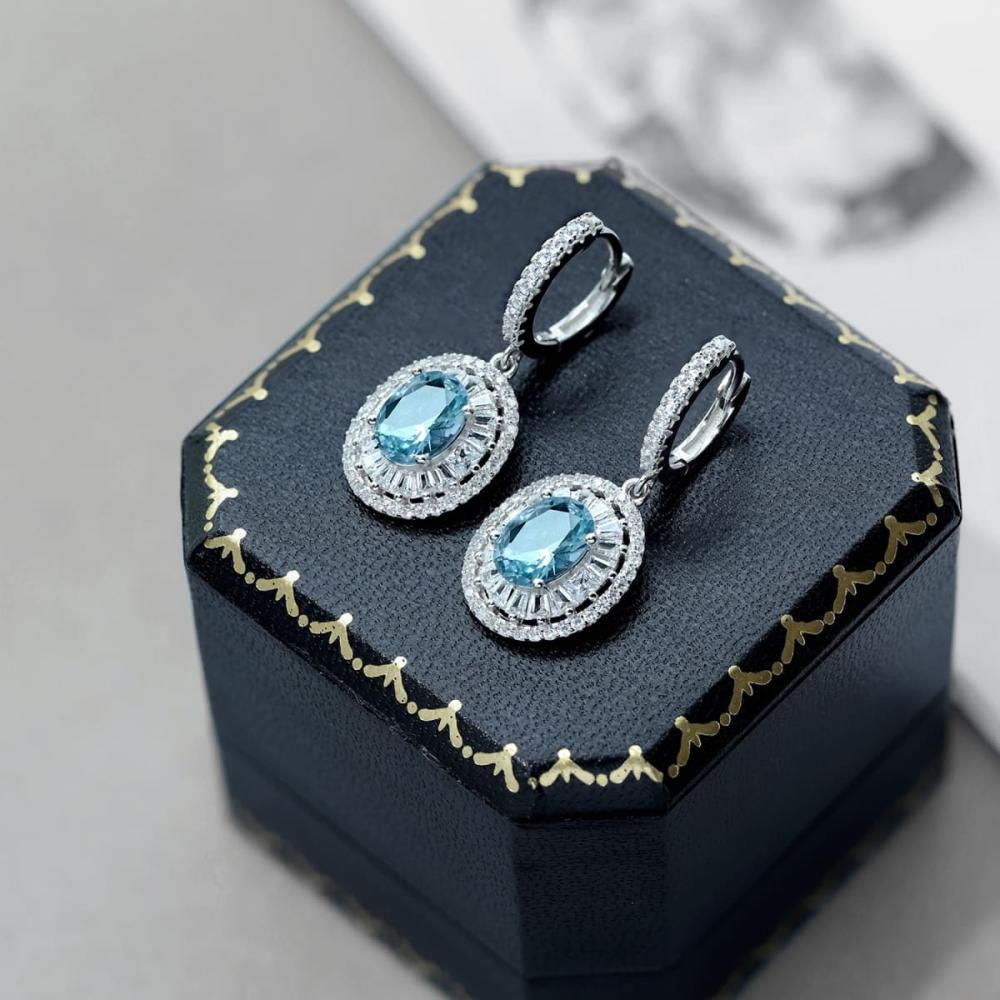 حلق Aqua من الفضة الخالصة بحجر سماوي