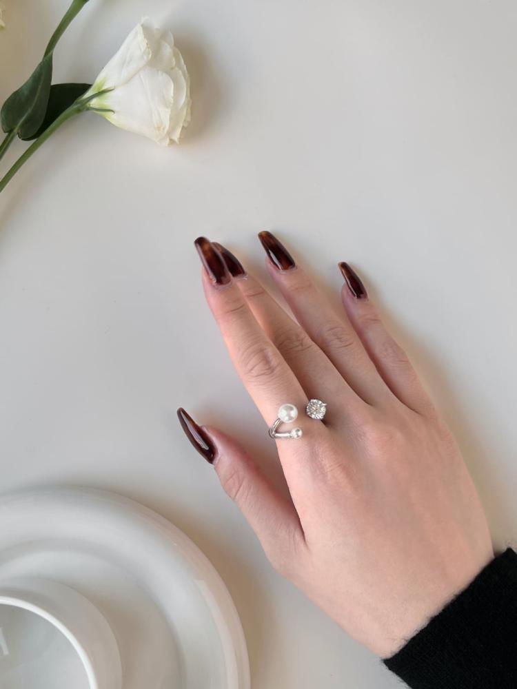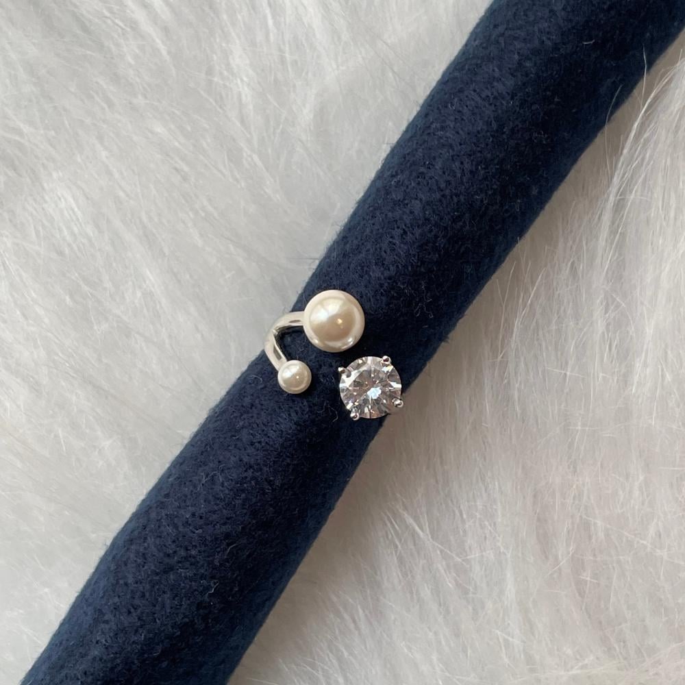 خاتم قابل للتعديل من الفضة الخالصة ومطعم بكريستالات من الكوبيك زيركون واللؤلؤ الزراعي