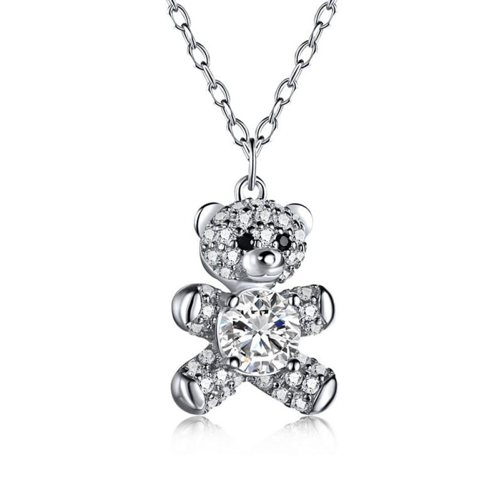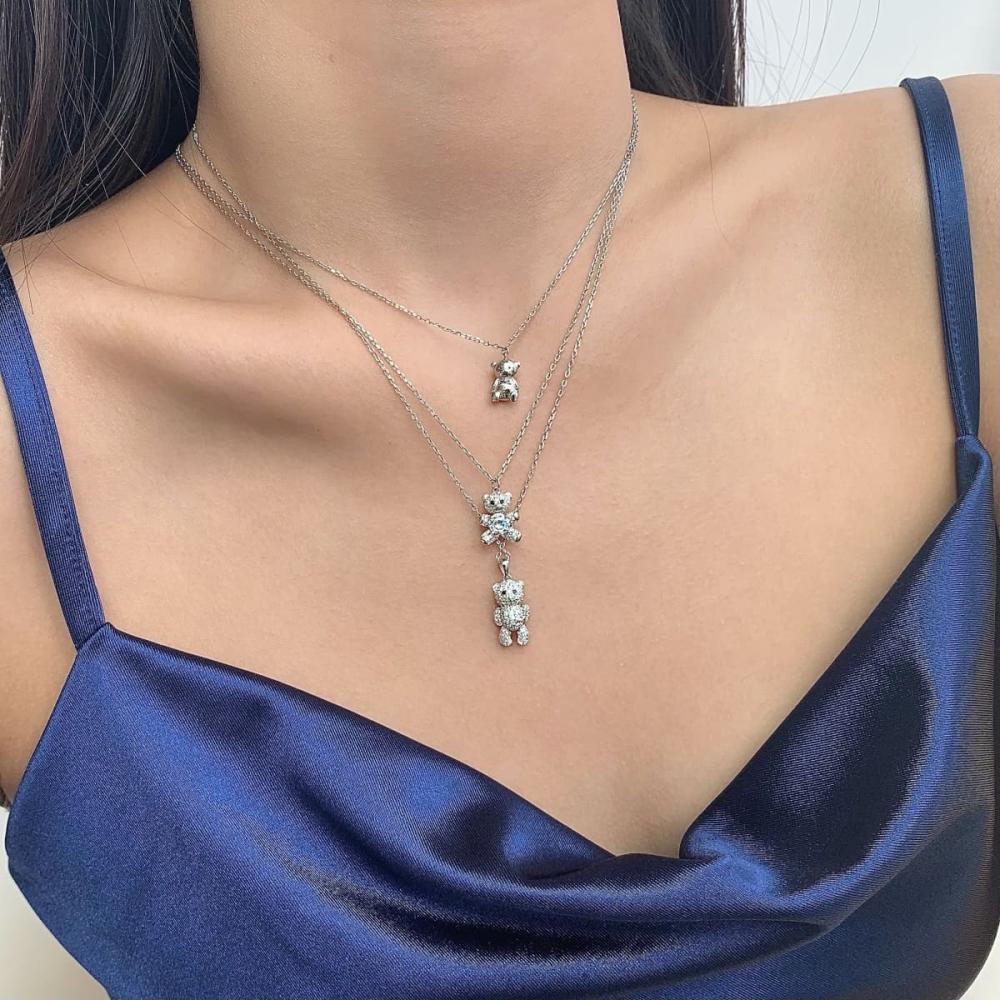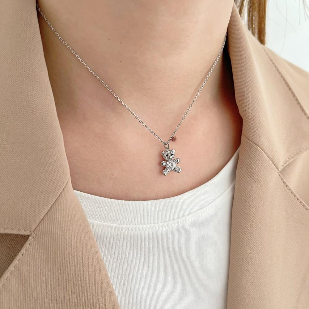سلسال متألق بتعليقة ميني دبدوب من الفضة الخالصة مشغول من الكوبيك زيركون . من القطع التي تناسب حفلات هدايا الميلاد والولادة ولمحبي القطع الصغيرة.