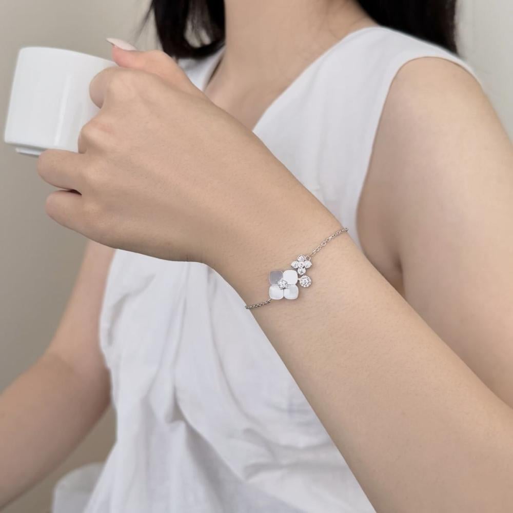 سوار رقيق من الفضة الاسترليني يتوسطه ورده من الصدف والكوبك الزيركون.